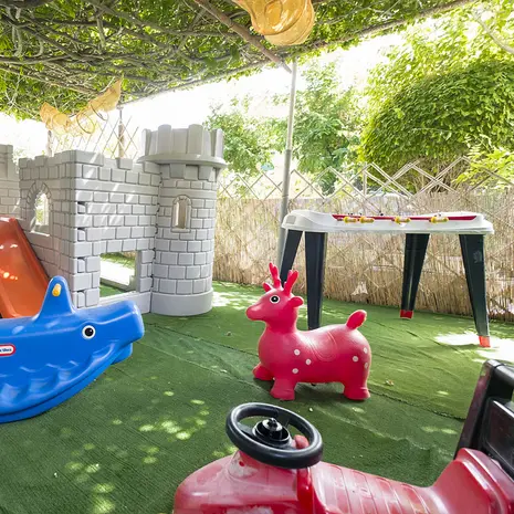 “The castle of dreams”, a play area for younger guests, located under the shadow of a protected and well-equipped garden area.Here children can play in absolute tranquility, under the careful eyes of their parents, who can enjoy a moment of relax, reading a book or drinking a coffee, while sitting under the terrace.