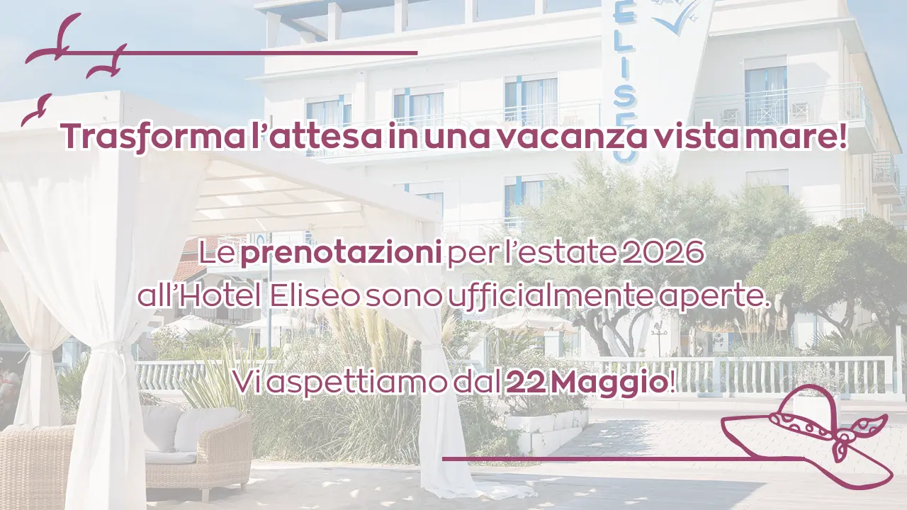 I vincitori del contest saranno annunciati entro il 30 aprile 2026. I biglietti di benvenuto selezionati saranno utilizzati a partire dall’apertura della stagione 2026 dell’Hotel Eliseo per accogliere gli ospiti nelle camere.